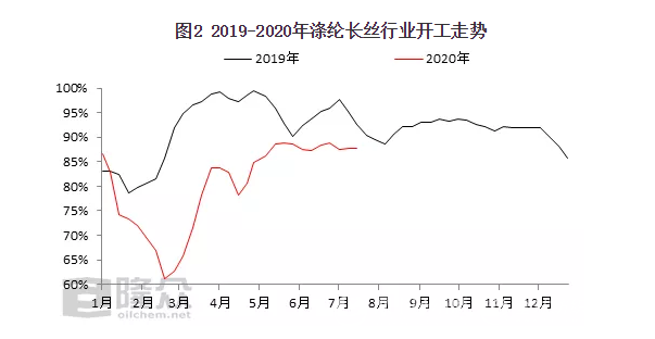 圖2 2019-2020年滌綸長絲行業(yè)開工走勢