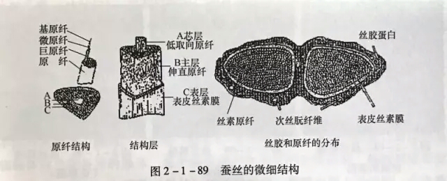 每一根繭絲都是由兩種主要物質(zhì)——絲素與絲膠組成,絲素是纖維的主體,絲膠包覆在絲素外面起保護(hù)作用。其次還有少量的蠟質(zhì)和脂肪,可以保護(hù)繭絲免受大氣的侵蝕,此外還包含少量的色素和灰分等。
