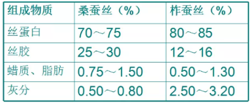 △一般桑蠶絲和柞蠶絲的物質(zhì)組成情況