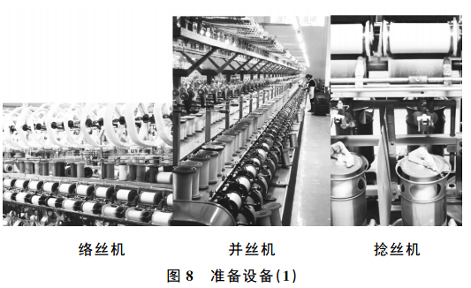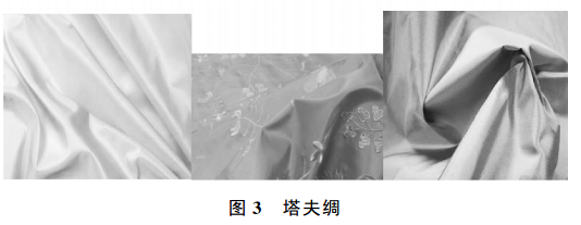 在織造前,還需做許多工作,我們稱準備工藝。如使絲膠軟化的浸漬、能改善產(chǎn)品性能的并絲和捻絲、定型、成絞、染色以及整經(jīng)、精絡(luò)等,不同產(chǎn)品的加工工藝流程不同。以塔夫綢為例:它的經(jīng)向和緯向的各需20多道工藝,這當中還不包括織造以后的綢面的檢驗、修補等等。塔夫綢見圖3。同時,由于蠶絲吸濕性強,還要做好防潮工作,現(xiàn)在的真絲綢生產(chǎn)都是在車間控制溫濕度條件下進行的。