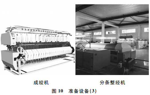 整經(jīng)是準備工藝中非常重要的環(huán)節(jié)。將絡(luò)絲筒管上的已加工好的絲,根據(jù)織物規(guī)格所需的經(jīng)絲數(shù)、長度、幅度要求,利用整經(jīng)機整成織品所需的經(jīng)線卷繞于經(jīng)軸上,每一個筒子上面都會有張力器,保證成千上萬根經(jīng)紗張力穩(wěn)定這是所有真絲梭織品必須經(jīng)過的工序,見圖10。