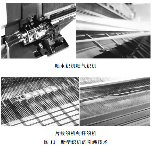 實際上現(xiàn)代織機發(fā)展非???,除在引緯技術(shù)上有噴氣、噴水織機,劍桿和片梭織機的智能化進一步提高,已經(jīng)逐步取代過去的有梭織機,見圖11。同時與之配套的電子提花機、電子多臂機、自動控制系統(tǒng),智能織造技術(shù),紋樣快速設(shè)計、相關(guān)CAD軟件和織物模擬發(fā)展很快,可與織機相匹配。車間里每臺織機的織造數(shù)據(jù)、工藝參數(shù)、生產(chǎn)管理都可以通過中央控制器雙向傳輸實現(xiàn)控制和設(shè)定?,F(xiàn)代織機及其配套設(shè)備智能化發(fā)展非???,而絲綢面料開發(fā)和生產(chǎn)工藝也在不斷地傳承和創(chuàng)新。