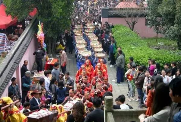 含山軋蠶花廟會從每年清明節(jié)(俗稱“頭清明”)開始,至清明第三天(俗稱“三清明”)結(jié)束。其中以頭清明較為熱鬧。蠶鄉(xiāng)農(nóng)民紛紛從水路、陸路涌向含山,熱鬧非凡,俗稱“軋蠶花”?!败垺睘閰欠窖?,是“擠”的意思。