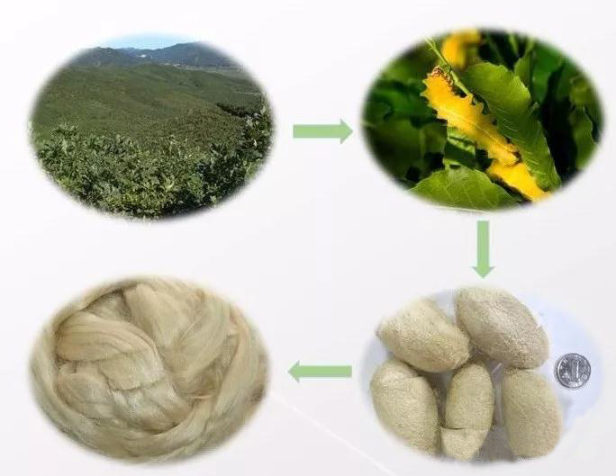 柞蠶生長在柞樹林,以天然柞樹葉為食,吐絲、成繭均在野外完成。蠶繭作為蠶蛹保護(hù)屏障,為了抵抗日曬雨淋,天然進(jìn)化出比桑蠶絲更耐酸堿的性能。