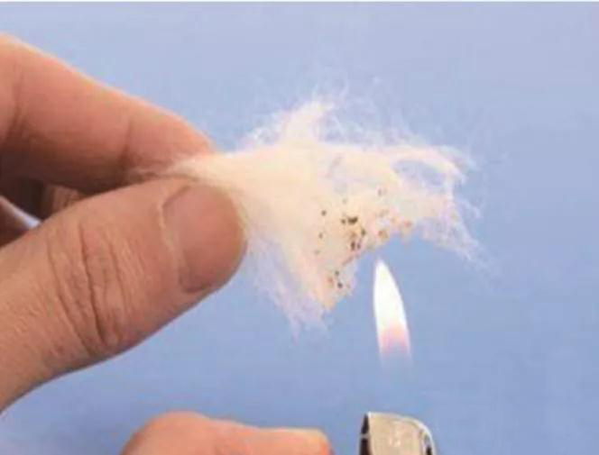 不易燃燒:柞蠶絲絲素中氮含量高,碳含量低,燃點(diǎn)在300~460℃之間,燃燒后馬上炭化,不易燃燒。
