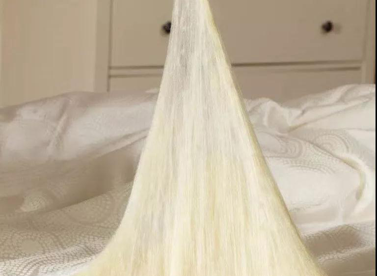 柞蠶絲帶有天然的淡黃色,通過不同程度的漂白,可以得到深淺不一的淡黃色,因而不染色,更出色。