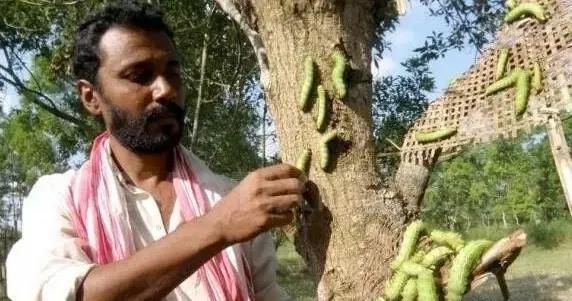 天蠶是自然界中一個十分珍稀的物種,天蠶絲是無價之寶,被稱之為賽過黃金的綠色軟寶石。在世界是可以巢制翠綠絲的蠶,寧安是我國為數很少的天蠶產地之一。