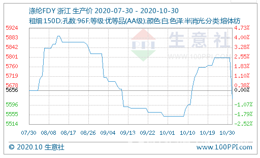 10月23-30日滌綸長絲市場均價漲跌情況,單位:元/噸