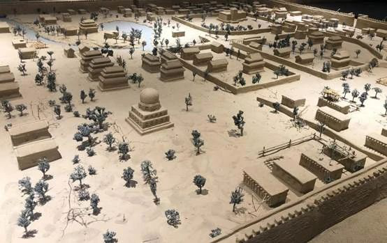 絲綢之路樓蘭道交通示意圖自張騫鑿空西域之后,經(jīng)過數(shù)十年的窮兵黷武,依靠霍去病、衛(wèi)青等軍事天才的能征善戰(zhàn),漢武帝終于將騷擾大漢已久的匈奴驅(qū)逐到大漠以北,當(dāng)時的時代強音就是“犯強漢者雖遠(yuǎn)必誅”!之后,漢帝國的地理版圖急劇擴張,設(shè)立河西四郡,這就是武威、張掖、酒泉、敦煌。很多年前,我從寧夏銀川坐火車去甘肅蘭州,當(dāng)時還沒有高鐵,火車的速度比較慢,坐了一晚上,第二天清晨六點才到蘭州。當(dāng)我走在出站的熙攘人群中,聽到車站的廣播里播出“武威、張掖、酒泉、敦煌”的站名的時候,心中很是莫名的感動。要知道,這四座城池來自漢武帝的命名,2000多年從未更改,仿佛像一個絲路印記,提示著那段如火烈烈、開疆辟土的時代。世上本沒有路,走的人多了就有了路。那么在2000多年前的漢代,是哪些人在樓蘭道上行走呢?最令人感動的是以弱小之軀肩負(fù)和親使命的公主,有出使的使臣、赴任的官吏、戍屯的士兵(最早的新疆建設(shè)兵團)、求法的僧侶,最重要的還有貿(mào)易的商隊、離開長安后,一路穿過河西走廊,來到敦煌,再通過最早的海關(guān)——陽關(guān)或者玉門關(guān),走出中原后遇到的第一站就是樓蘭。在此意義上,樓蘭扼守絲路要道,是連接中原和西方的必經(jīng)之路,是名副其實的“西域橋頭堡”。樓蘭地處上佳地段,成為西域強國自然不足為奇。千百年來,樓蘭國和樓蘭道共衰共榮。樓蘭的地理位置如此重要,漢帝國自然會加強對樓蘭的管轄和治理。公元前60年,漢朝正式設(shè)立西域都護,以國家的名義將西域的廣袤疆域納入中國版圖,樓蘭國在中原的經(jīng)營和治理下,在兩漢時期也達到鼎盛。此時的樓蘭,生態(tài)環(huán)境很好,孔雀河的水量豐沛,城內(nèi)水道密布,林木蔥郁。這是新疆若羌的樓蘭博物館陳列的一個樓蘭古城模型,這個模型是以最新最全的考古成果為基礎(chǔ),再結(jié)合史料記載復(fù)原出來的。筑城乃是大事,既然西域納入漢帝國的版圖,那么城池的形制、規(guī)模、大小都要依照漢王朝的規(guī)定,不可逾制。當(dāng)時西域甚至中亞一帶,筑城的風(fēng)格與中原內(nèi)地不太一樣,他們喜歡將城市筑成圓形,但是漢代樓蘭采用方形筑城。
