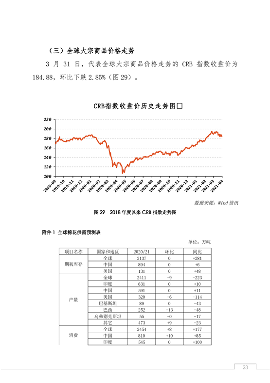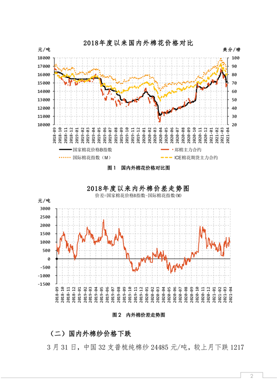 中國棉花市場4月月報(數(shù)據(jù)篇):國內(nèi)外棉價沖高回落