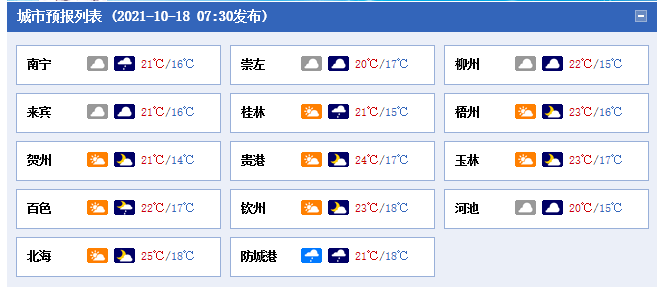 廣西氣象臺(tái)18日05時(shí)發(fā)布預(yù)報(bào):