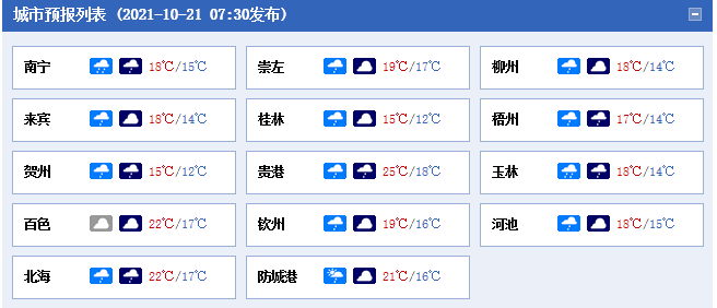 廣西氣象臺(tái)21日05時(shí)發(fā)布預(yù)報(bào):