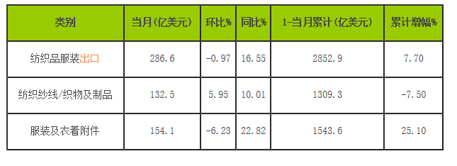 2021年11月我國紡織品服裝出口金額統(tǒng)計