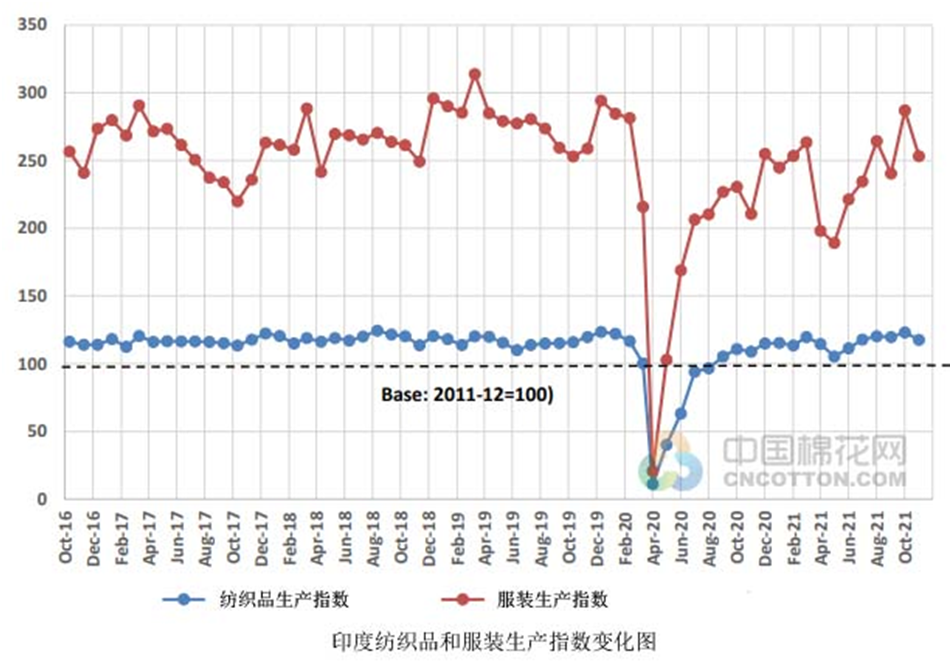 印度方面,2021年11月,印度紡織品產(chǎn)量同比增長8%,服裝產(chǎn)量增長33.4%。2021年4月至11月,紡織品和服裝產(chǎn)量同比分別增長47.6%和28.3%。從以上數(shù)據(jù)可以看出,印度紡織廠逐步從疫情中恢復(fù)過來,工廠經(jīng)營狀況已經(jīng)回到了疫情前的水平。從印度絲綢貿(mào)易數(shù)據(jù)來看,2021年1-11月,印度絲綢貿(mào)易額為32.51億美元,同比增長19.47%。其中,進(jìn)口額為3.24億美元,同比增長35.79%;出口額為29.27億美元,同比增長17.91%。