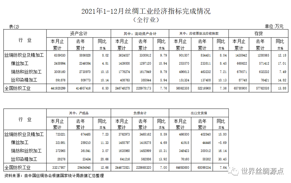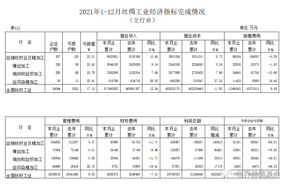 數(shù)據(jù)|2021年1-12月絲綢工業(yè)經(jīng)濟(jì)指標(biāo)完成情況(全行業(yè))