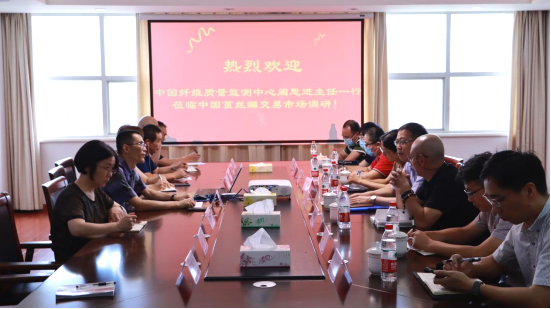 7月21日上午,中國纖維質(zhì)量監(jiān)測中心主任閻思進、監(jiān)測二處副處長羅俐,浙江省纖維質(zhì)量檢測中心主任徐勤,湖州市質(zhì)量技術(shù)監(jiān)督檢測研究院院長汪小東等一行蒞臨中國繭絲綢交易市場調(diào)研。市場總經(jīng)理劉卓明,副總經(jīng)理朱雪鳳、楊桂霞,區(qū)域營銷總監(jiān)陳錦明,倉儲管理部經(jīng)理金玉顥參加了座談。