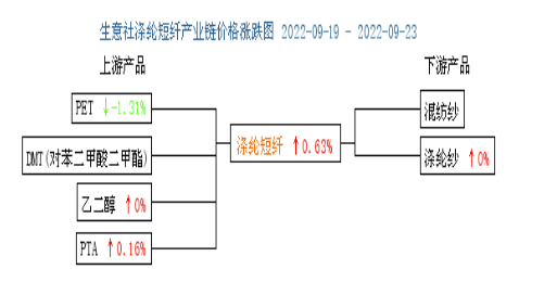 本周國際原油期貨價格主要受美聯(lián)儲繼續(xù)激進(jìn)加息政策的影響震蕩大跌,美油主力本周大跌6.60%周收盤收于79.38美元每桶。近期PTA開工率處于高位,庫存處于較高水平,下游需求雖所有改善但整體仍然偏弱,油價大跌成本端也拖累PTA,PTA期貨價格走低。乙二醇本周開工率回升不過整體維持低位,下游需求不溫不火,油價大跌拖累,乙二醇期貨走弱。三房巷短纖裝置檢修完畢準(zhǔn)備重啟,短纖整體負(fù)荷預(yù)期上升,下游紗廠織造廠近期開工變化不大,對短纖需求保持低位,受上游原料走弱影響,本周短纖期貨行情走勢較弱。