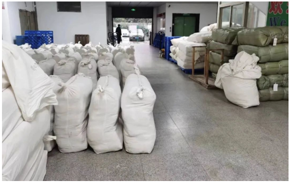 同時(shí),隨著價(jià)格的下一臺(tái)階,普貨生絲價(jià)格和印度國(guó)內(nèi)價(jià)差逐步縮小,雖然印度國(guó)內(nèi)消費(fèi)一般,但近期在市場(chǎng)電子盤面價(jià)格附近仍有些陸續(xù)成交出口。圖為市場(chǎng)嘉興總部的打包現(xiàn)場(chǎng)。高品質(zhì)生絲的出口部分工廠反映也有些持續(xù)。整體上,近日各等級(jí)生絲走貨上較前幾日有所略放大,整體價(jià)格略下降。