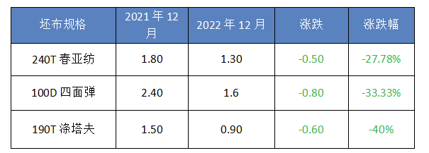 240T春亞紡從1.8元跌至1.3元;