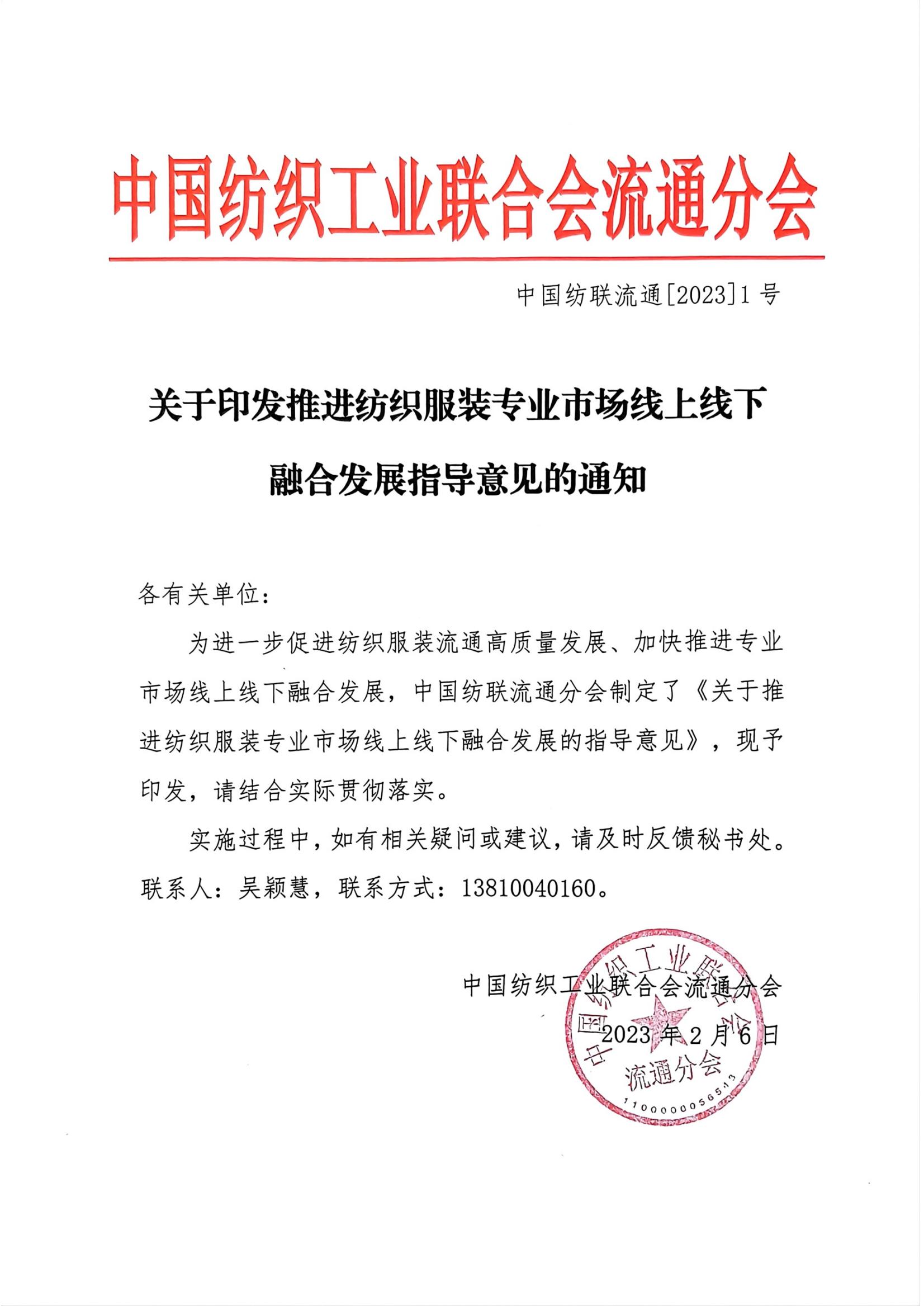 《關(guān)于推進(jìn)紡織服裝專業(yè)市場線上線下融合發(fā)展的指導(dǎo)意見》