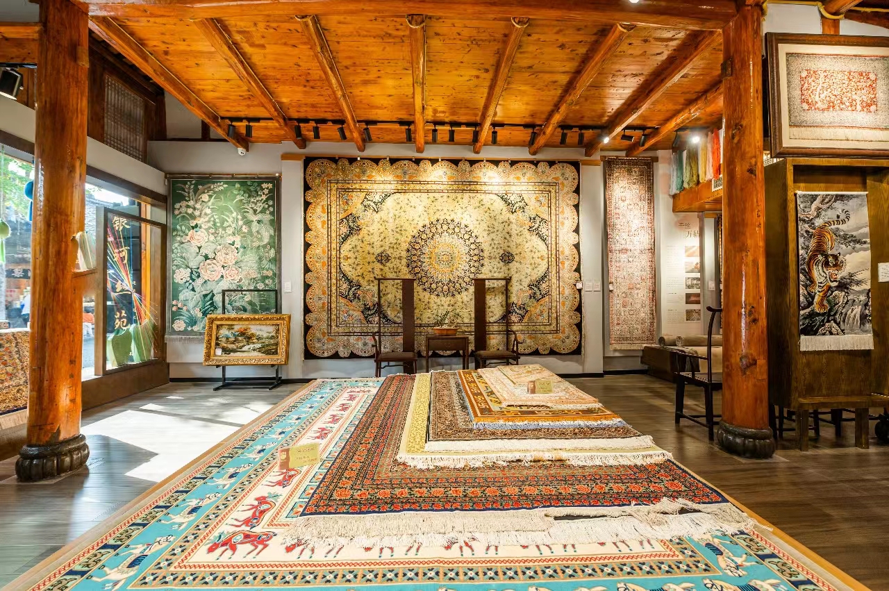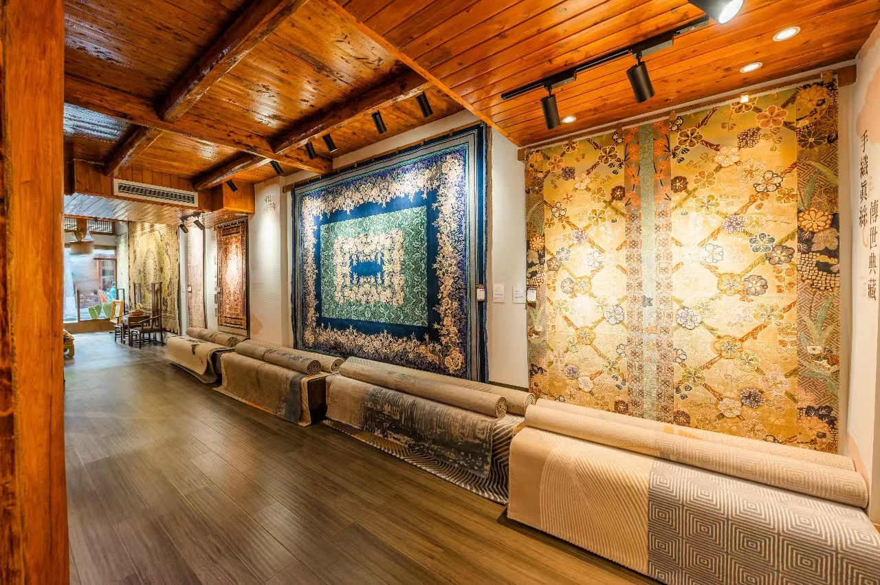 千年古城閬中,至今保留著一種用純手工來編織“高密度蠶絲地毯”的工藝。這種工藝,編織一平方米地毯至少需要半年時間,并于二零一四年十一月十一日被正式收錄進“國家級非物質(zhì)文化遺產(chǎn)代表性項目”,它的傳承者便是位于閬中城北的“銀河地毯”。