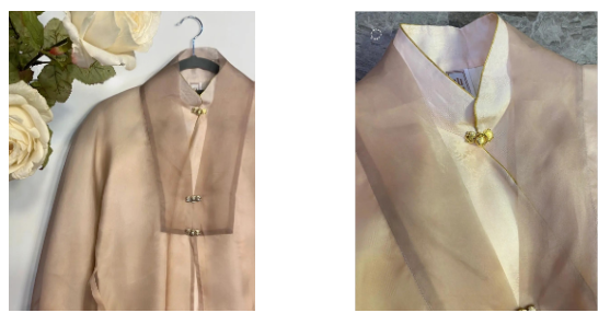 隨著技術的不斷創(chuàng)新,現(xiàn)在的綃類面料不僅只有真絲一種原料,金銀絲等特色材料同時被用作綃的織造中來達到客戶的需求。