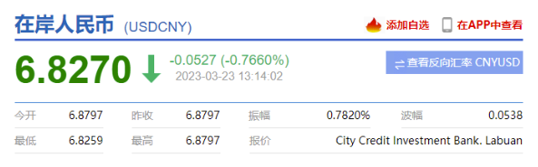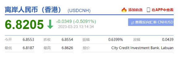 3月23日,人民幣對美元即期匯率開盤即大漲近400點,隨后繼續(xù)升破6.85和6.83關口。