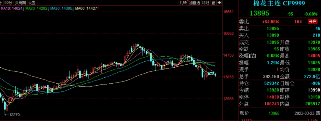 中信期貨資深研究員 吳靜雯:下跌主要有產(chǎn)業(yè)和宏觀兩個層面的原因。宏觀層面,海外銀行風(fēng)險事件沖擊市場,股市、商品均下行,ICE棉期價大幅下挫,帶動鄭棉下跌。產(chǎn)業(yè)層面,供應(yīng)方面,本年度中國棉花增產(chǎn),大約增量在80-90萬噸,加工周期較往年延長一個多月,供應(yīng)持續(xù)增量,商業(yè)庫存去化節(jié)點(diǎn)延后,供應(yīng)增多使得棉價承壓;需求方面,內(nèi)外需分化,紡服出口受制于海外高庫存以及終端進(jìn)口需求萎縮而同比持續(xù)下滑,內(nèi)需雖然持續(xù)向好,但復(fù)蘇進(jìn)度不算快。雖然未來預(yù)期向好,但短期上漲驅(qū)動不足,在宏觀利空擾動沖擊下,棉價因此下跌。