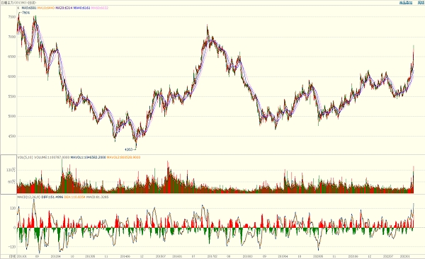 今年春節(jié)后,國內(nèi)鄭商所白糖期貨價(jià)格跳空高開,逐步漲至6000元/噸以下。經(jīng)過盤整,迅速啟動上漲態(tài)勢,直至此番超過6700元/噸。