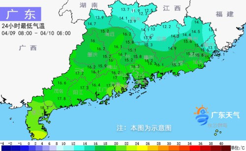 9日白天,韶關(guān)、河源、梅州、粵東和珠三角中東部市縣受云量減少影響,最高氣溫較8日上升了2℃~6℃,其余市縣持平或下降1℃左右;全省最高氣溫大部介于20℃~25℃,其中梅州蕉嶺錄得全省最高溫度25.7℃。10日早晨,受云量增多影響,粵北市縣最低氣溫較9日上升了3℃~6℃,其余市縣上升了1℃~2℃;全省最低氣溫介于13℃~20℃之間,其中潮州饒平錄得全省最低氣溫13.2℃。