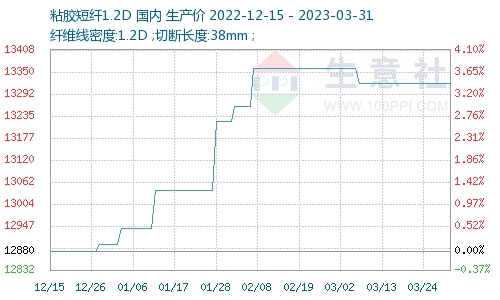 據(jù)生意社商品行情分析系統(tǒng)顯示,一季度粘膠短纖市場(chǎng)先漲后跌,總體上揚(yáng),截止3月31日,1.2D*38mm粘膠短纖國(guó)內(nèi)地區(qū)出廠報(bào)價(jià)為13320元/噸,較年初上漲420元/噸,漲幅3.26%。