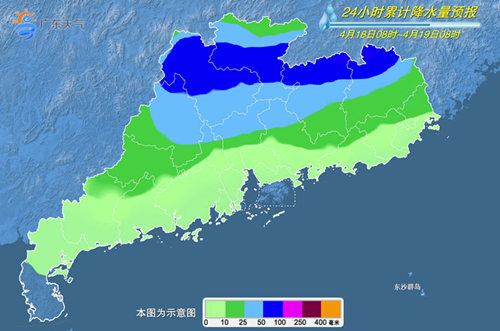 18日夜間-19日粵北、珠三角、粵東有大雨到暴雨局部大暴雨,粵西中雷雨局部大雨或暴雨,并伴有雷電、短時強降水、8~10級短時大風(fēng)和冰雹等強對流天氣。早晨最低氣溫:南部沿海市縣22℃~24℃,其余市縣20℃~22℃。