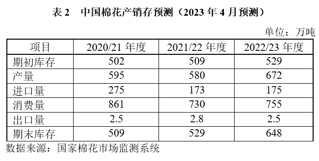 (三)2022年度中國棉花產(chǎn)銷存預(yù)測下調(diào)棉花進口量
