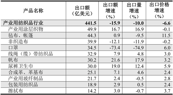 2022年我國產(chǎn)業(yè)用紡織品行業(yè)及主要產(chǎn)品出口情況