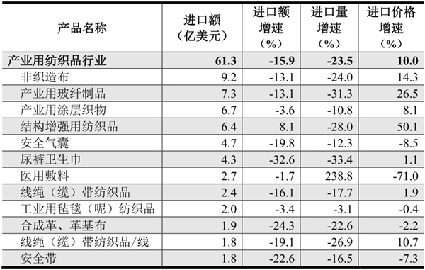2022年我國產(chǎn)業(yè)用紡織品行業(yè)及主要產(chǎn)品進(jìn)口情況