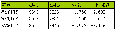 滌綸長(zhǎng)絲市場(chǎng)均價(jià)漲跌情況單位:元/噸