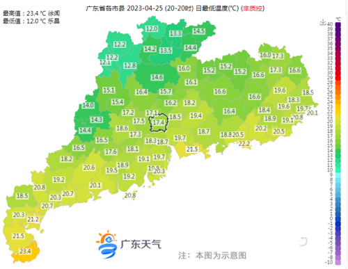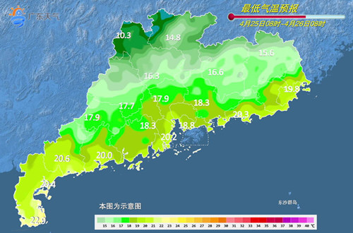 26日,南部沿海市縣分散陣雨轉(zhuǎn)陰天,其余市縣多云為主。早晨最低氣溫:粵北市縣、肇慶北部11℃~15℃,南部沿海市縣20℃~23℃,其余市縣16℃~19℃。