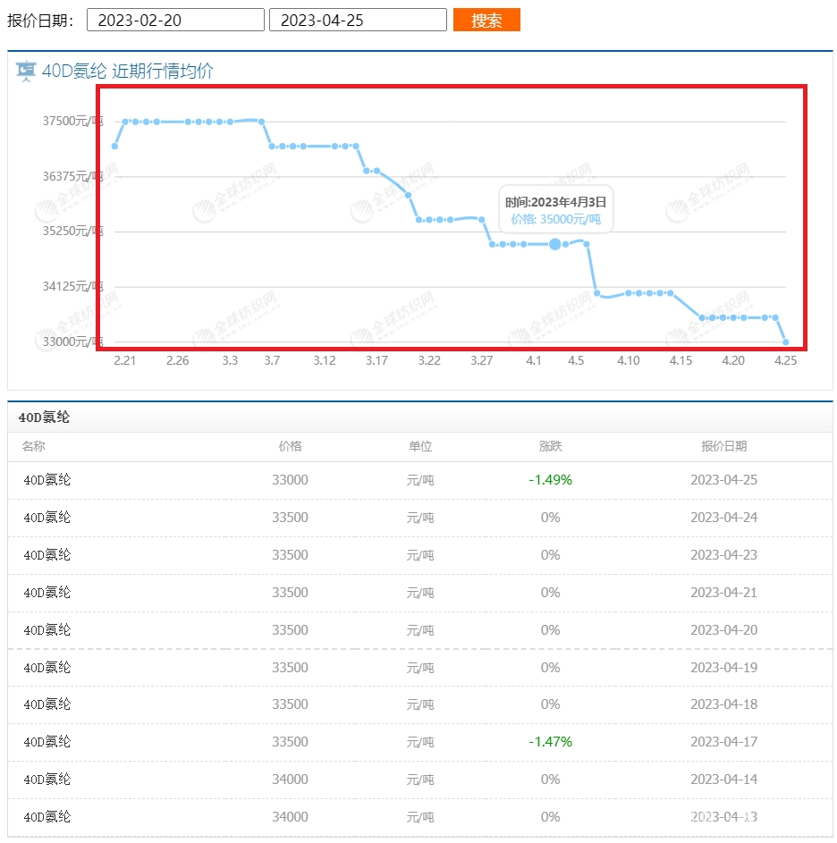 氨綸價格跌跌不休