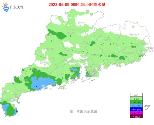 9日早晨最低氣溫:雷州半島22℃~24℃,其余大部分市縣介于17℃~21℃之間,其中清遠(yuǎn)連山錄得全省最低氣溫17.5℃。