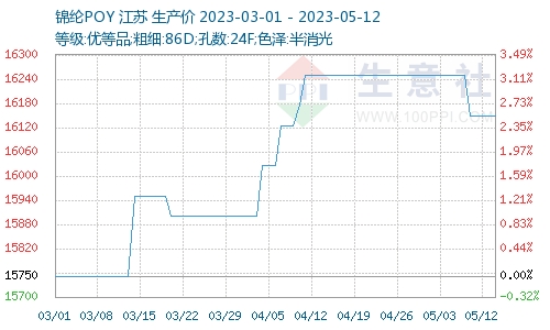 據(jù)生意社商品行情分析系統(tǒng)顯示,上周(2023年5月8—12日),錦綸長絲價(jià)格窄幅下滑。截止2023年5月12日,江蘇地區(qū)錦綸長絲DTY(優(yōu)等品;70D/24F)報(bào)價(jià)18460元/噸,較上周價(jià)格下跌60元/噸;錦綸POY(優(yōu)等品;86D/24F)報(bào)價(jià)16150元/噸,較上周價(jià)格下跌100元/噸,周跌幅0.62%;錦綸FDY(優(yōu)等品:40D/12F)價(jià)格報(bào)19075元/噸,較上周價(jià)格下跌200元/噸,周跌幅0.52%。