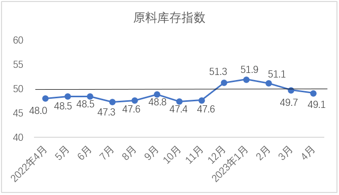 4月,原料采購指數(shù)為49.3,較3月下降2.3,位于榮枯線下方。從原料市場價格看,棉花價格震蕩上揚,滌綸短纖價格在油價上漲拉動下小幅上升,粘膠短纖價格穩(wěn)中略有下降。具體數(shù)據(jù),國內(nèi)3128級棉花現(xiàn)貨月均價15176元/噸,環(huán)比上漲459元/噸,漲幅3.12%;1.4D直紡滌短月均價7521元/噸,環(huán)比上漲204元/噸,漲幅2.79%;主流粘膠纖維月均價12996元/噸,環(huán)比下降59元/噸,降幅0.45%。當月原料價格水平波動較大,棉紡織企業(yè)謹慎觀望,原料采購積極性不高,整體采購量較3月下降。