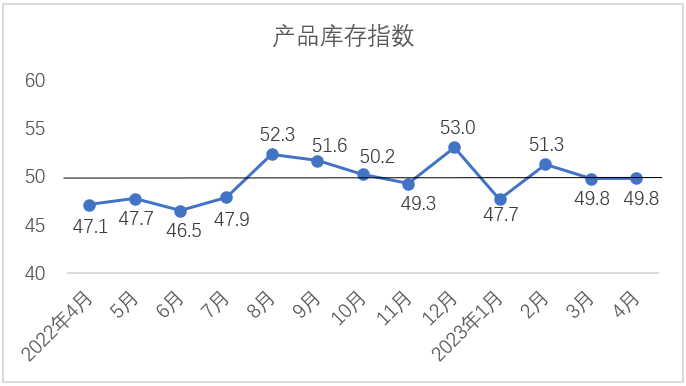 4月,產(chǎn)品庫存指數(shù)為49.8,與3月持平,表明產(chǎn)品庫存水平無明顯改善。隨著前期訂單逐步完成交貨,棉紡織企業(yè)出貨減緩,紗布產(chǎn)品庫存開始增加。整體看,織造企業(yè)庫存水平好于紡紗企業(yè)。從構(gòu)成產(chǎn)品庫存指數(shù)的分項指標看,紗庫存量指數(shù)為49.7,較3月下降0.3;布庫存量指數(shù)為50.0,較3月上升0.5,可以看出坯布庫存維持在景氣水平。