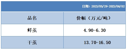 根據(jù)本周蠶繭報(bào)價(jià)按照指數(shù)方案形成的基準(zhǔn)品價(jià)格區(qū)間