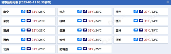 廣西各城市天氣預(yù)報(bào)。(來源:中國天氣網(wǎng))