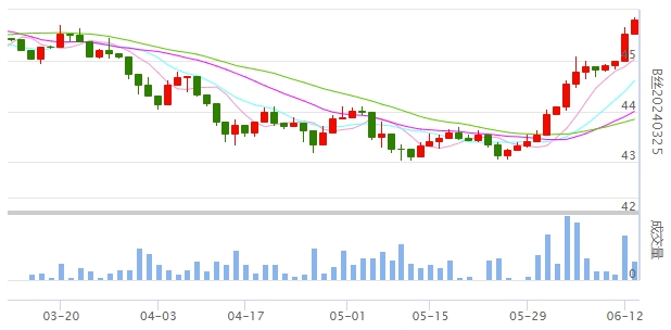 今日(2023年06月13日,周二)中國繭絲綢交易市場生絲指數(shù)上漲0.84%收于4480.37點(diǎn)。B絲(商檢4A級(jí)生絲):230625合約上漲0.33萬元報(bào)收于44.46萬元;230925合約上漲0.30萬元報(bào)收于44.76萬元;240325合約上漲0.27萬元報(bào)收于45.81萬元。