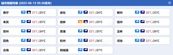 廣西各城市天氣預(yù)報(bào)。(來(lái)源:中國(guó)天氣網(wǎng))