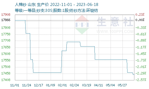 人棉紗下游需求清淡,紗廠出貨趨緩,價格局部陰跌局面,成交一般,產(chǎn)品庫存壓力逐步加大,整體開工負荷有下降趨勢。局部企業(yè)存在庫存壓力下有降價促銷現(xiàn)象,據(jù)生意社商品行情分析系統(tǒng)顯示,截止6月18日人棉紗(30S,環(huán)錠紡,一等品)出廠均價為17450元/噸,價格陰跌。目前來看,紡織終端市場需求難有明顯改觀,紗線企業(yè)亦難有強勢作為,多根據(jù)自身出貨情況調(diào)整商談空間。