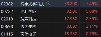 電子零件股多數(shù)上漲。舜宇光學(xué)科技(78.2, 0.00, 0.00%)漲7.4%、信利國際(0.9, 0.00, 0.00%)漲近6%、瑞聲科技(17.96, 0.00, 0.00%)漲2.3%。消息方面,中國信息通信研究院昨日發(fā)布數(shù)據(jù)顯示,5月份中國市場手機(jī)出貨量呈回暖態(tài)勢。2023年5月,國內(nèi)市場手機(jī)出貨量2603.7萬部,同比增長25.2%,其中,5G手機(jī)2016.9萬部,同比增長13.7%,占同期手機(jī)出貨量的77.5%。