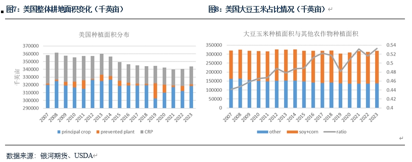 3.美豆過早下跌疊加其他農(nóng)作物擴(kuò)種或?yàn)槊娣e下降主要原因