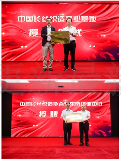 會(huì)上舉行了“中國長(zhǎng)絲織造產(chǎn)業(yè)基地”授牌儀式、“中國長(zhǎng)絲織造協(xié)會(huì)豫東南培訓(xùn)中心”授牌儀式。